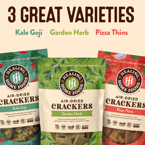 Each delivery includes three bags each of our bestselling raw, gluten-free crackers: