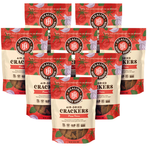 How did we recreate the simple joy of pizza in a raw cracker? By using almond flour, oat flour, and golden flaxseed meal to as a vessel for our very own sun-dried tomatoes, garlic, basil, and oregano. A nutritious, satisfying, and kid-friendly raw snack that can stand alone.